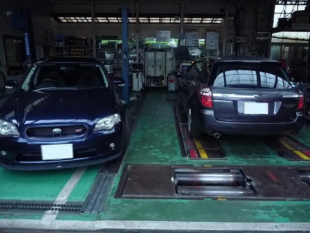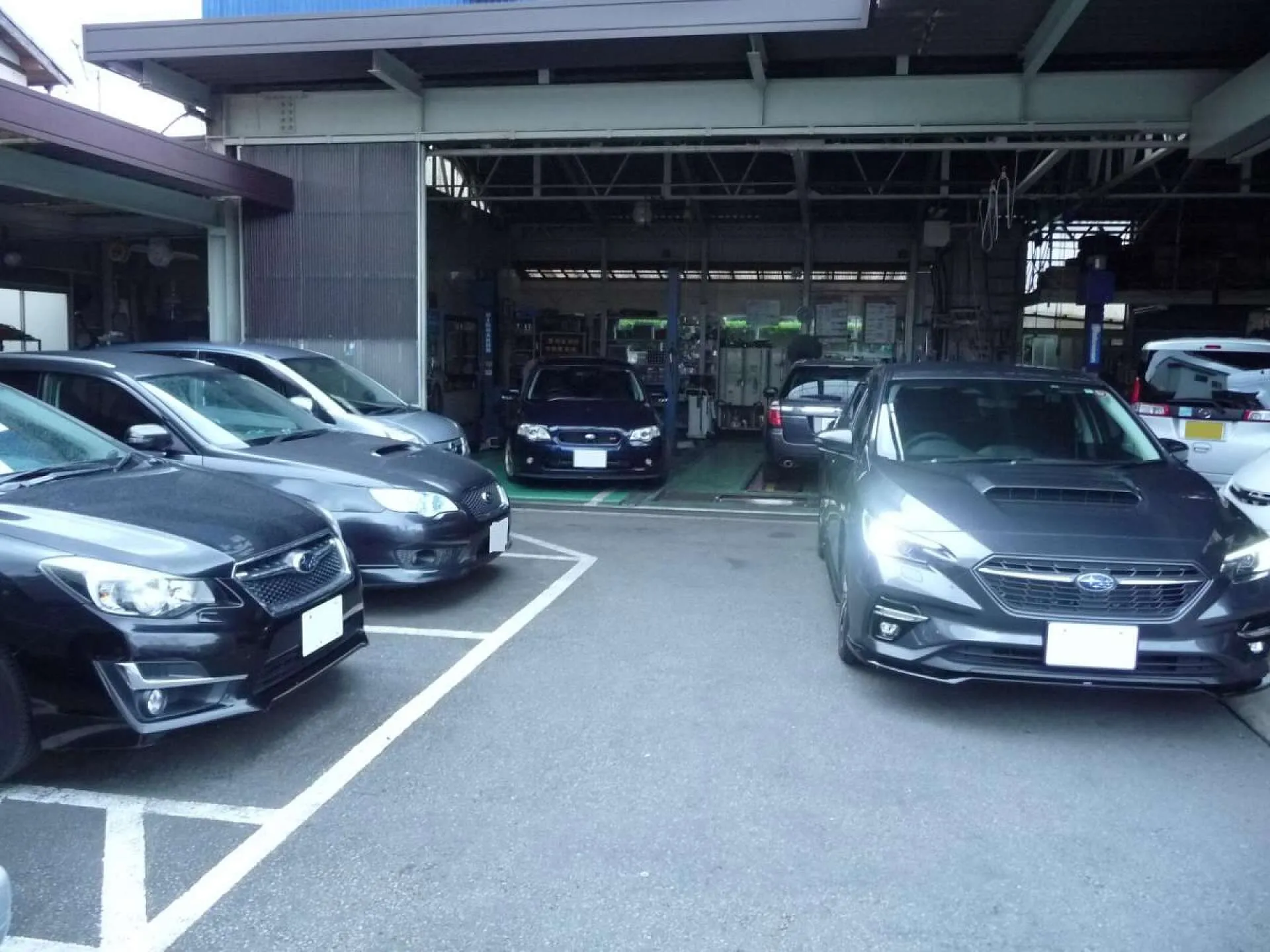 工場内のテールだけ見えてるレガシー、ダイヤモンドグレーメタリック